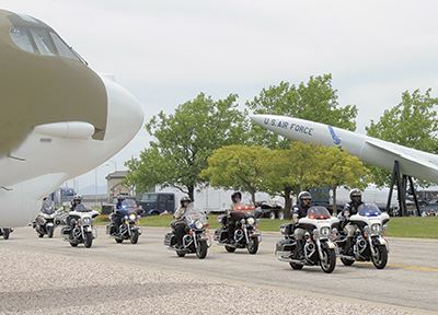 Local law enforcement and Utah Highway Patrol escort motorcycle riders June 4 during Hill Air Force Base’s 6th annual See Me, Save Me ride. Nearly 300 riders participated in the annual event, which aims to motivate motorists to take a second look, specifically for motorcyclists and smaller traffic, and to share the road with the smaller traffic, including bicyclists and pedestrians.